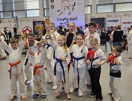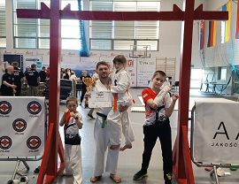 Bezkonkurencyjny Dawid Fejkiel zdobył złoto w kumite (niejednokrotnie kończąc walki przed czasem) i srebro w kata. Milena Szczepanik, po wygraniu dwóch trudnych walk, zdobyła brąz. Julian Jureczko dotarł do półfinału, gdzie nieznacznie uległ przeciwnikowi, ostatecznie zajmując trzecie miejsce. Maciej Syrek w kategorii Pierwszy Krok kumite, po emocjonujących pojedynkach, wywalczył srebro.