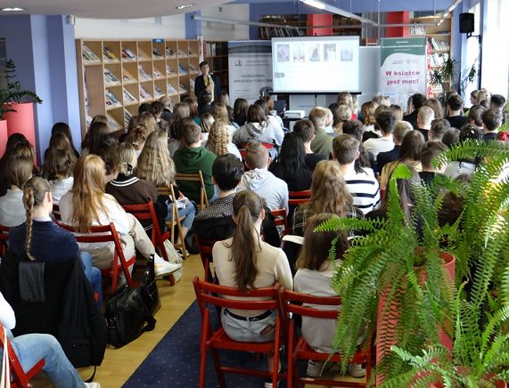 25.04.202221 kwietnia br. w czytelni Oddziału dla Dzieci oraz w Filii nr 4 Krośnieńskiej Biblioteki Publicznej odbyły się spotkania autorskie z Ewą Nowak – autorką powieści i opowiadań dla dzieci i młodzieży. W spotkaniach uczestniczyli uczniowie klas IV-VI ze Szkoły Podstawowej nr 8 w Krośnie i ze Szkół Podstawowych w Szczepańcowej i Bóbrce oraz dwie klasy VIII ze Szkoły Podstawowej nr 3 w Krośnie. -