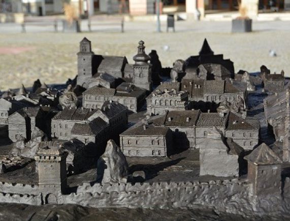 25.11.2019Makieta miasta Krosna wykonana z brązu, została usytuowana w centrum zespołu staromiejskiego, jako pokrywa studni stojącej na rynku. Jest to przestrzenny model historycznego miasta z przełomu XVI i XVII w., odzwierciedlający jego wizerunek zamieszczony w dziele G. Brauna i F. Hogenberga „Miasta Świata”. -