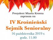 10.10.2019Prezydent Miasta Krosna zaprasza do udziału w IV Krośnieńskim Sejmiku Senioralnym, który odbędzie się w dniu 16 października 2019 r. o godzinie 11.00 w Zespole Szkół Mechanicznych im. S. Staszica w Krośnie przy ul. Tysiąclecia 5. Podczas Sejmiku będzie poruszana tematyka problemów z jakimi na co dzień zmagają się Seniorzy widziane oczami organizacji pozarządowych przez Prezesa Stowarzyszenia „Dla Równości”. Przewidziany jest także wykład lek. med. geriatry, internisty. Zapraszamy.