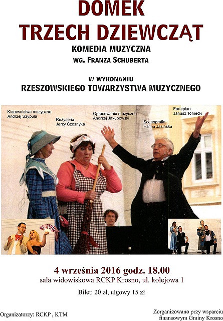 Miłośników muzyki pięknej, łagodnej, romantycznej i ponadczasowej czeka prawdziwa gratka. W pierwszą niedzielę września krośnieńska publiczność będzie miała okazję obejrzeć w odsłonie wiedeńskiej komedię muzyczną Franciszka Schuberta "Domek trzech dziewcząt".