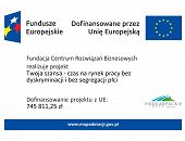 20.10.2025Fundacja Centrum Rozwiązań Biznesowych realizuje II edycję projektu: „Twój Sukces Zawodowy", który jest współfinansowany ze środków Państwowego Funduszu Rehabilitacji Osób Niepełnosprawnych w ramach zlecenia realizacji zadań w formie wsparcia nr 1/2023 pn. „Możemy więcej”. -