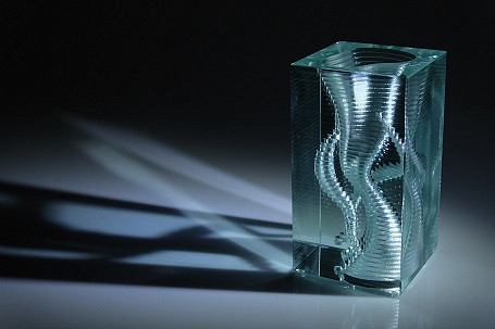 ”Szkło to dziwna substancja. Z jednej strony wymagająca, żądna skupionej uwagi i rozległej wiedzy. Z drugiej, wyrazista, a zarazem chętna do zmian. Jako materia może być poddana różnego rodzaju działaniom i technikom, może być barwiona, wyciągana, stapiana, rozciągana, cięta, dmuchana, tłuczona i na nowo łączona. Idąc tym tropem rozpocząłem eksperymenty z formami szklanymi łącząc je z innymi materiałami tak odmiennymi jak np. metal czy drewno.