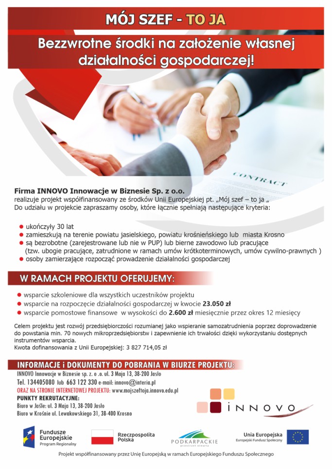 Jeśli masz pomysł na założenie własnego biznesu i potrzebujesz wsparcia, weź udział w rekrutacji do projektu "Mój szef - to ja". Nabór wniosków potrwa od 17 do 30 czerwca 2020 r.