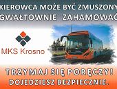 03.10.2022MKS Krosno rozpoczyna akcję „Bezpieczne podróżowanie MKS-em”, której celem jest uświadomienie pasażerom komunikacji miejskiej, że w czasie jazdy trzeba trzymać się poręczy. -