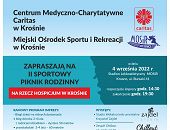 23.08.2022Zapraszamy na II Sportowy Piknik Rodzinny na rzecz Hospicjum w Krośnie 4 września (niedziela) na Stadionie Lekkoatletycznym przy ul. Bursaki 41. Będzie moc atrakcji dla dzieci i całych rodzin m.in. biegi dla dzieci na różnych dystansach, gry, zabawy i animacje, pokazy sprzętu ratowniczo-gaśniczego, symulator dachowania, występy artystyczne i lot balonem na uwięzi. Szczegóły na plakacie. Początek o godz. 14.30. -