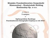 18.05.2022Miło nam poinformować, że Krośnieński Holding Komunalny po raz kolejny znalazł się w czołówce najlepszych przedsiębiorstw energetyki cieplnej w kraju i zajął 5. miejsce w Ogólnopolskim Rankingu Przedsiębiorstw Energetyki Cieplnej za rok 2022. -