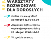 21.02.2022Ferie to dobra okazja, żeby zrobić coś dla siebie i twórczo spędzić czas - nawet jeżeli nie jest się dzieckiem. Dlatego Krośnieńska Biblioteka Publiczna zaprasza dorosłych na cykl bezpłatnych zajęć on-line, w ramach których będzie można rozwinąć swoje kompetencje z zakresu rozwoju zawodowego, a także osobistego. -