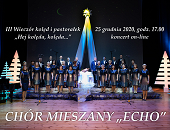 23.12.2020Zapraszamy do udziału w niecodziennym i przełamującym barierę odległości koncercie kolęd. III Wieczór kolęd i pastorałek „Hej kolęda, kolęda...” w wykonaniu Chóru „Echo” to pretekst, by odwiedzić Was w domach i zachęcić do rodzinnego i kulturalnego spędzenia czasu. Najpiękniejsze kolędy do usłyszenia i zobaczenia w sieci 25 grudnia o godzinie 17.00. -