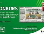 07.09.2020Informujemy, że od 7 września br. w gazecie codziennej Super Nowości trwa konkurs „Rolniku spisz się sam” związany z Powszechnym Spisem Rolnym 2020. Codziennie mdo wygrania bony o wartości 200 zł każdy. Konkurs trwa do 2 października 2020 r. -