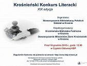 06.11.2018Już po raz 19. Stowarzyszenie Bibliotekarzy Polskich Oddział w Krośnie i Krośnieńska Biblioteka Publiczna zapraszają do udziału w Krośnieńskim Konkursie Literackim. -