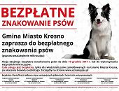 27.04.2017Posiadanie psa to wielka przyjemność, ale również odpowiedzialność i obowiązek. Wszystkich posiadaczy psów, którzy są zameldowani na terenie miasta Krosna, zapraszamy do bezpłatnego znakowania psów (wszczepienie mikroczipa). Akcja potrwa do 15 grudnia lub do wykorzystania wszystkich mikroczipów. Identyfikacja psów ma duże znaczenie szczególnie w sytuacjach kiedy np. zwierzę zaginie. Więcej szczegółów na plakacie. -