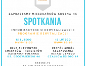 10.02.2017Chcesz dowiedzieć się więcej na temat programu rewitalizacji miasta Krosna przyjdź na spotkania informacyjne. Zapraszamy już w środę 15 lutego. Pierwsze z nich odbędzie się w Klubie Aktywnych Emerytów i Rencistów Dzielnicy Polanka przy ul. Decowskiego 46 w godz. 14.30 - 16.00. Drugie ze spotkań zaplanowano w Zespole Szkół Kształcenia Ustawicznego przy ul. Czajkowskiego 49 w godz. 19.00 - 20.30. -