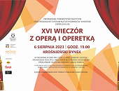 27.07.2023Krośnieńskie Towarzystwo Muzyczne oraz Regionalne Centrum Kultur Pogranicza zapraszają do udziału w XVI Wieczorze z operą i operetką. Tradycyjnie w pierwszą niedzielę sierpnia na krośnieńskim zabrzmią słynne arie, duety z oper, operetek i musicali. Na plenerowej scenie wystąpią wokaliści i instrumentaliści doceniani nie tylko przez krośnieńską publiczność. -