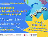 25.04.2023Zapraszamy na spotkanie z Moniką Szubrycht, autorką książki „Autyzm. Bliski daleki świat” - 12 maja (piątek) o godz. 16.00 w Saloniku Artystycznym Krośnieńskiej Biblioteki Publicznej /ul. Wojska Polskiego 41/. -