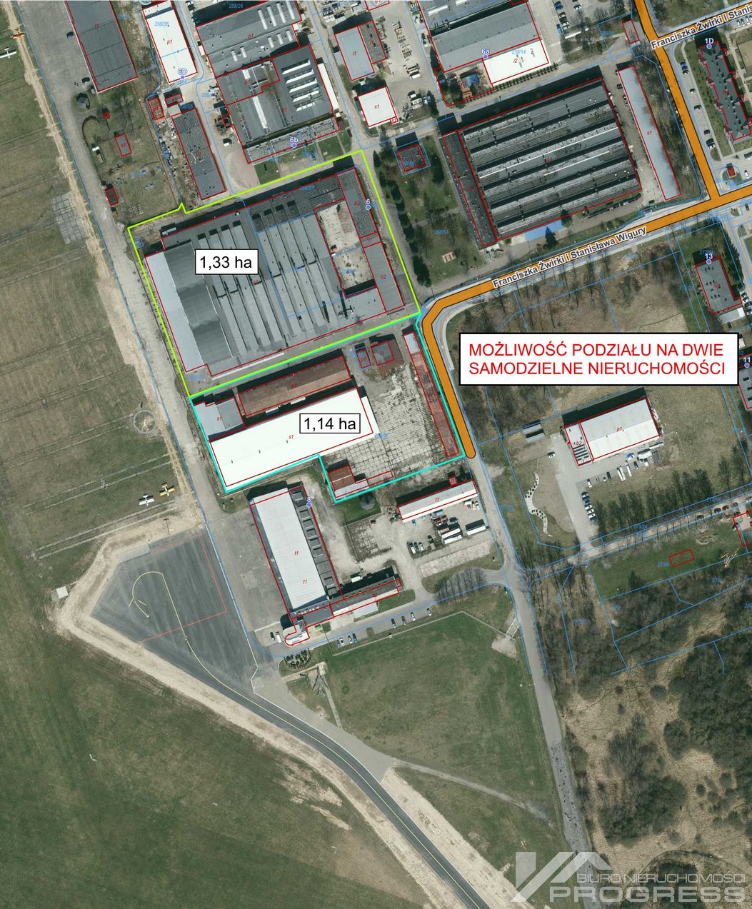 Doskonała lokalizacja w sąsiedztwie krośnieńskiego lotniska, duża powierzchnia przemysłowa i magazynowa oraz lokale biurowe, możliwość podziału na dwie odrębne nieruchomości – to główne wyróżniki oferty obiektów przy ul. Żwirki i Wigury 6 w Krośnie.