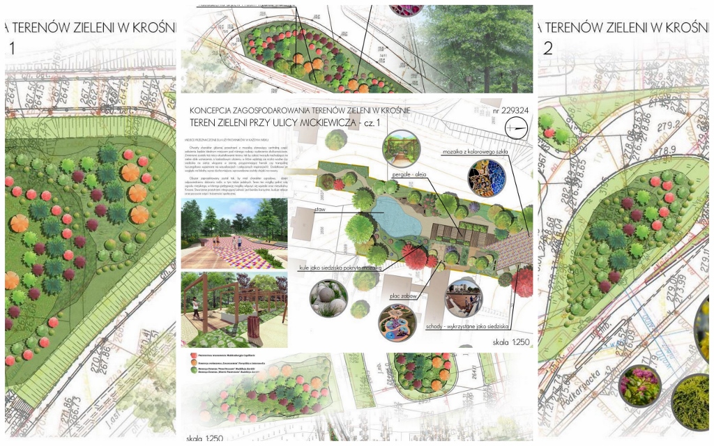 Urząd Miasta Krosna w lutym br. ogłosił konkurs na „Opracowanie koncepcji zagospodarowania terenów zieleni w Krośnie”. Do 18 kwietnia 2017 r. specjaliści ds. zieleni mogli przesyłać swoje propozycje na zaaranżowanie skwerów i zieleńców w czterech lokalizacjach w mieście. Komisja konkursowa nie przyznała pierwszej nagrody, ale najciekawsze propozycje będą wykorzystane przy realizacji.