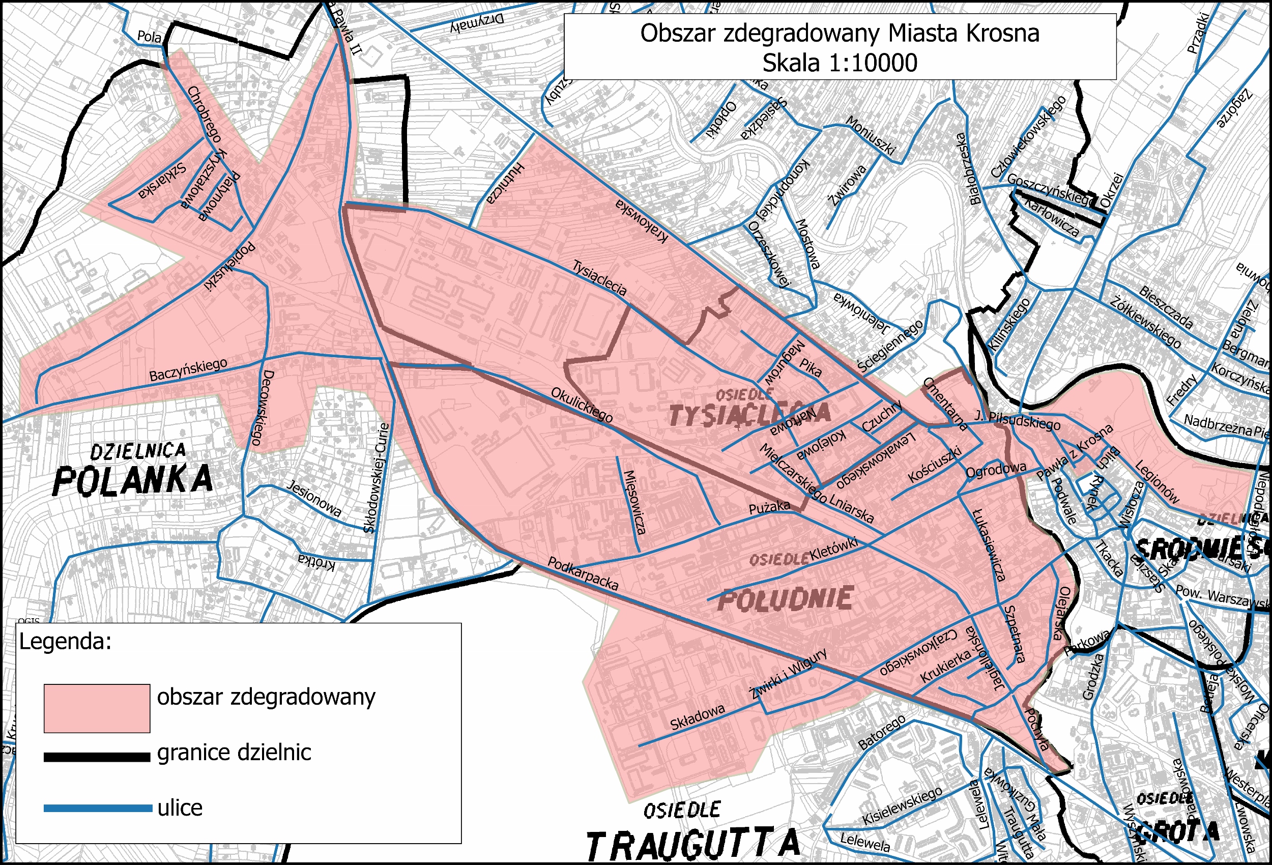 Rysunek 1. Obszar zdegradowany Miasta Krosna - Kliknij aby zobaczyć mapę w powiększeniu